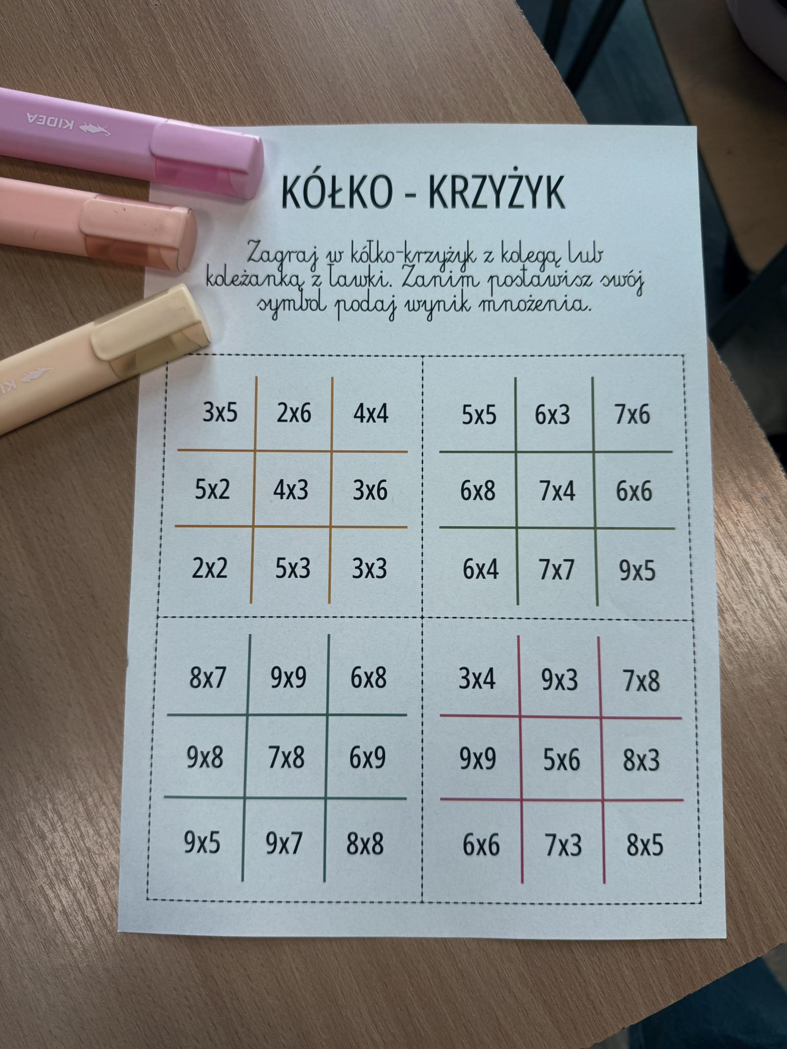 GRA KÓŁKO – KRZYŻYK – MATEMATYKA z zadaniami z zakresu mnożenia, która idealnie sprawdzi się na zajęcia z edukacji matematycznej.