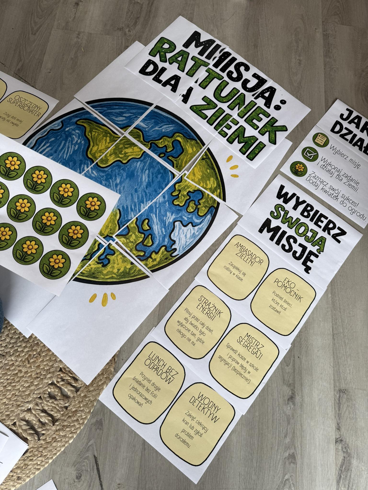 Dzieci wybierają misję, wykonują konkretne zadanie ekologiczne i zaznaczają swój sukces, tworząc wspólny „ogród działań dla Ziemi”. Każda aktywność to realny krok w stronę dbania o planetę!