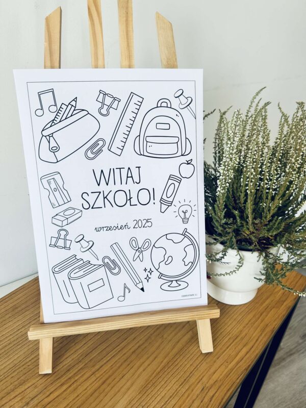 ✅ Plakat – kolorowanka „Witaj Szkoło” – idealna do udekorowania sali i wspólnego rozpoczęcia roku,